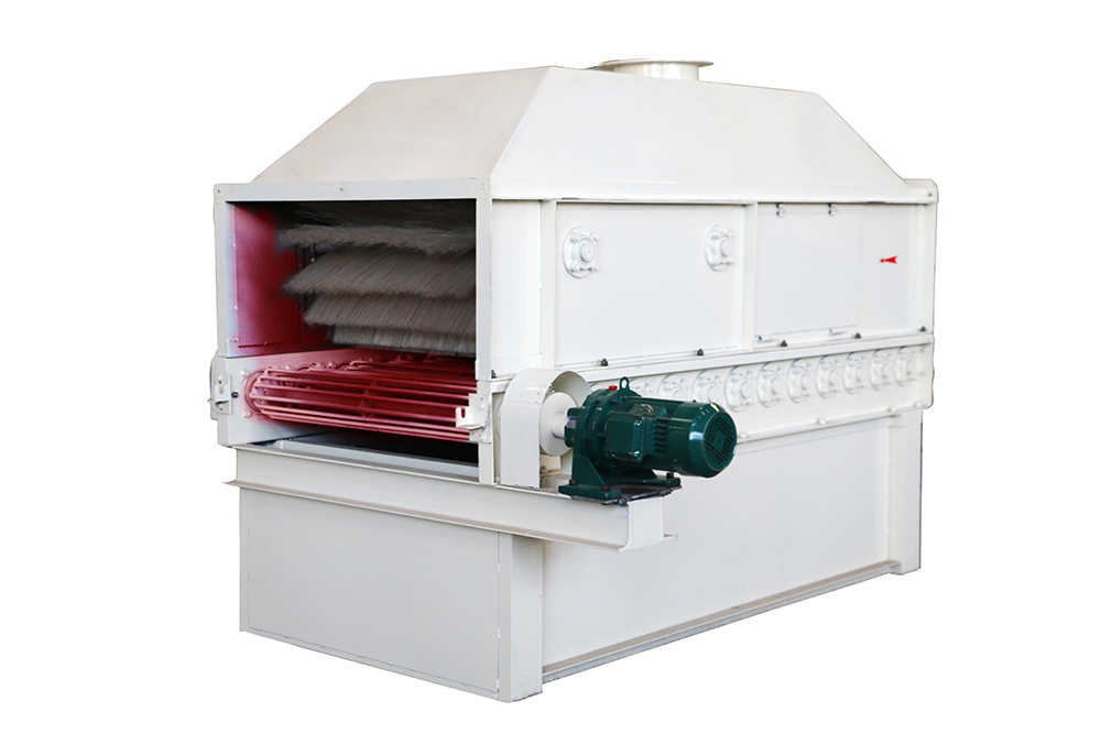 独特的旋转辊刷,使得水泥袋上浮灰 被彻底清除,便于后续喷码印刷;与众不 同的滚笼错落布置,能让水泥袋波浪前 行,落灰干净且及时排空袋内压力气体, 配合上下大风量的收尘确保水泥袋走出加 长的机体后再无扬尘出现。