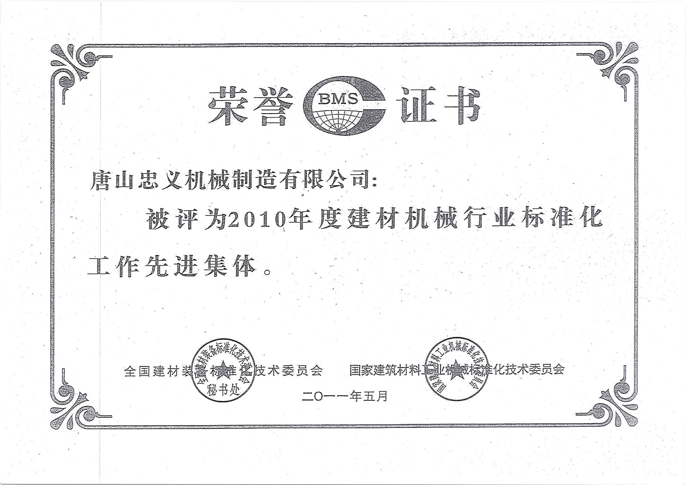 建材机械行业荣誉证书